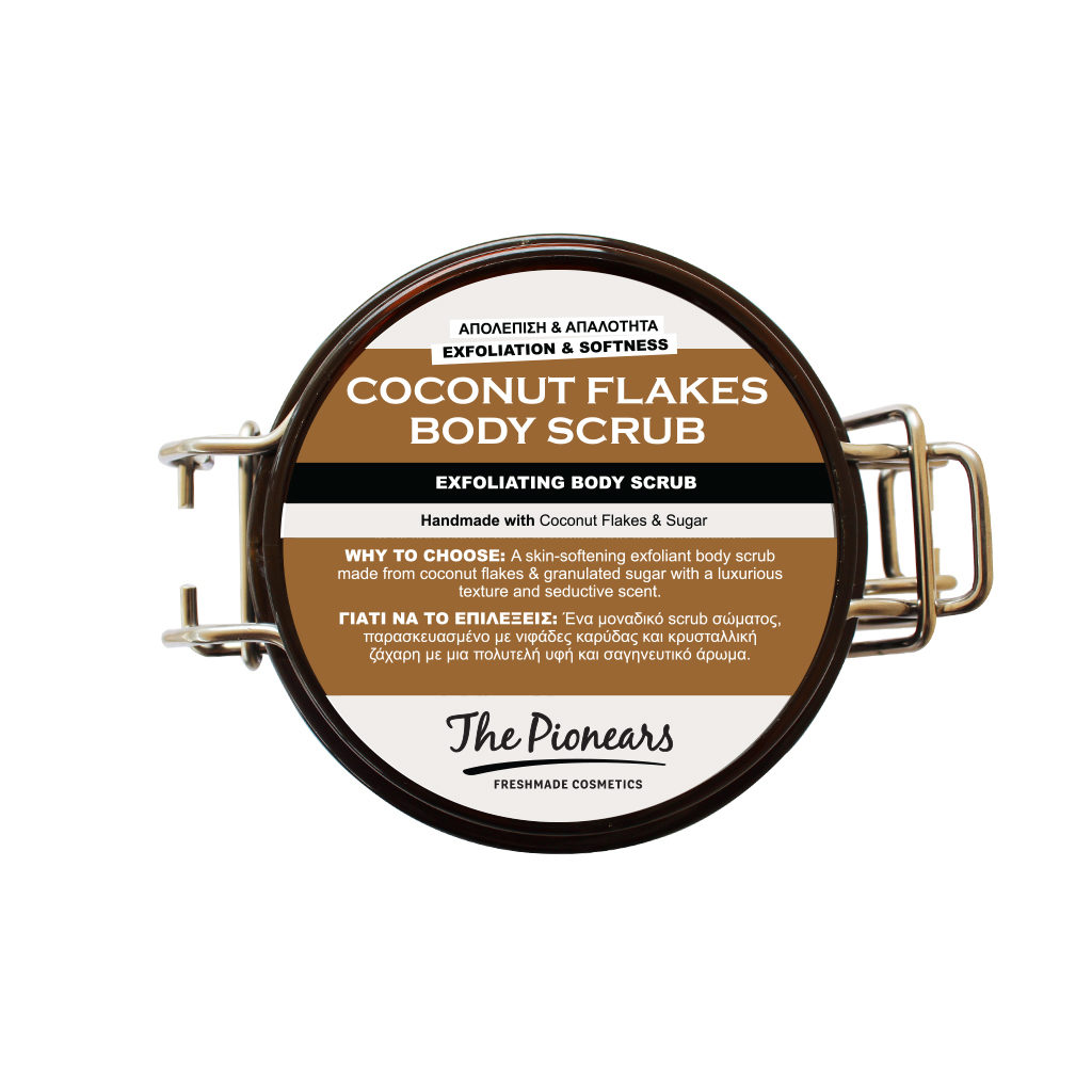 Exfoliant tělový peeling zjemňující pokožku vyrobený z kokosových vloček a granulovaného cukru s luxusní texturou a svůdnou vůní. Kokosové vločky jsou exfolianty pocházející z přírodních zdrojů, které pomáhají jemně odstraňovat suchou, matnou pokožku a zároveň zjemňují a vyživují pokožku. Granulovaný cukr charakterizovaný jako „vodní magnet“, protože má schopnost zadržovat molekuly vody a udržovat jej v kůži. Coconut Sunset Body Scrub je euforickým zážitkem pro pokožku a smysly!