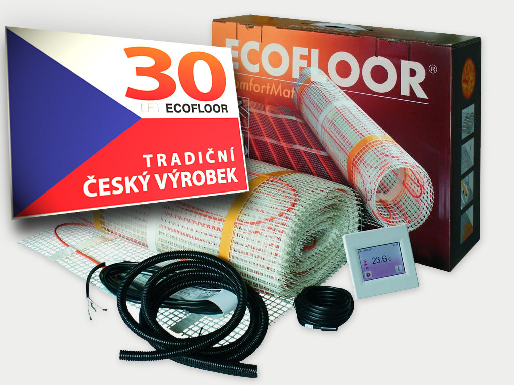 - sada obsahuje: topná rohož s jednostranným přívodem, programovatelný dotykový termostat, podlahové čidlo s instalační trubicí, dokumentace