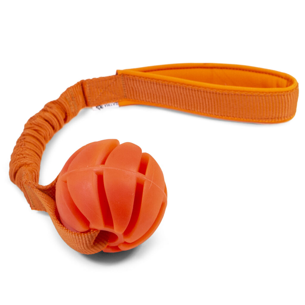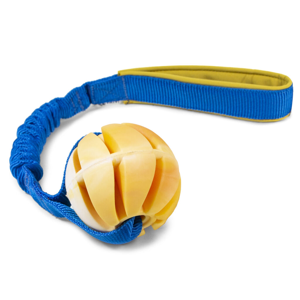 Míček z kaučuku je lehký a něco vydrží. Rukojeť z popruhového materiálu je podšitá odolným a snadno omyvatelným fleecovým materiálem, abyste si nespálili dlaně ani při vášnivějších hrátkách. Odpružovací Bungee technologie se navíc postará o to, aby bylo přetahování pro páníčky bezpečné a pejsci si mohli maximálně zapružit.