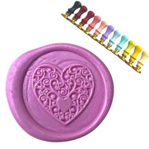 Pečetidlo s motivem Srdíčko je ideální pro dekorování, zdobení obálek, přání, jmenovek a další zdobení. Ozdobte své produkty pečetí. Přidejte pečeť na domácí produkty: ať už víno nebo marmelády. Ozdobte, vše čemu chcete dodat větší eleganci a sváteční charakter. Objevujte kouzlo pečetění a vraťte se s námi zpět do minulosti, kdy každé psaní bylo zdobeno touto elegantní technikou. Pečetidlo má mosaznou hlavu s vyraženým motivem a je doplněno dřevěnou rukojetí v různých barevných variantách.