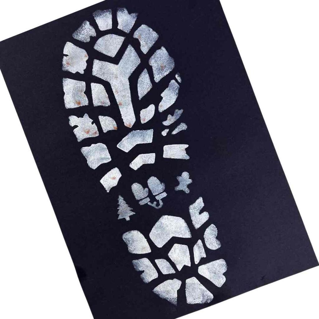 Plastová šablona k malování - Kreativní nástroj pro výtvarné projekty. Vytvořte snadno a rychle krásné vzory a dekorace s touto šablonou. Ideální pro malování, scrapbooking a další umělecké aktivity. Plastová šablona s krásným motivem stopy od boty