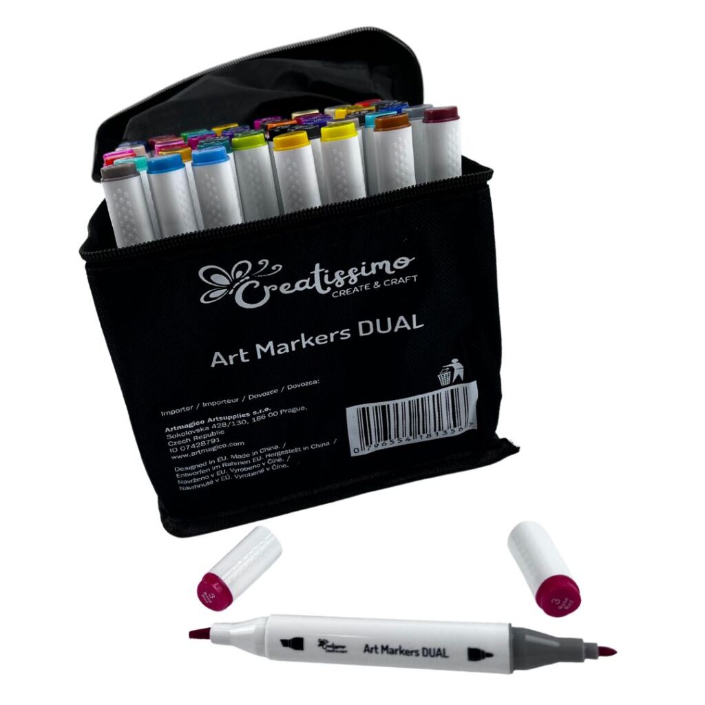 Oboustranné popisovače na alkoholové bázi: Perfektní nástroj pro precizní kreslení i široké tahy! Na jedné straně široký seřízlý hrot a z druhé tenký špičatý pro tenké linky. Tento popisovač je ideální pro všechny, kteří hledají vysokou kvalitu a univerzálnost v jednom. Jeho alkoholová báze zajišťuje intenzivní a stálé barvy, které dlouho vydrží a nevyblednou. Ať už jste profesionální umělec nebo začátečník, tento popisovač se stane nepostradatelným doplňkem vaší umělecké sady.
