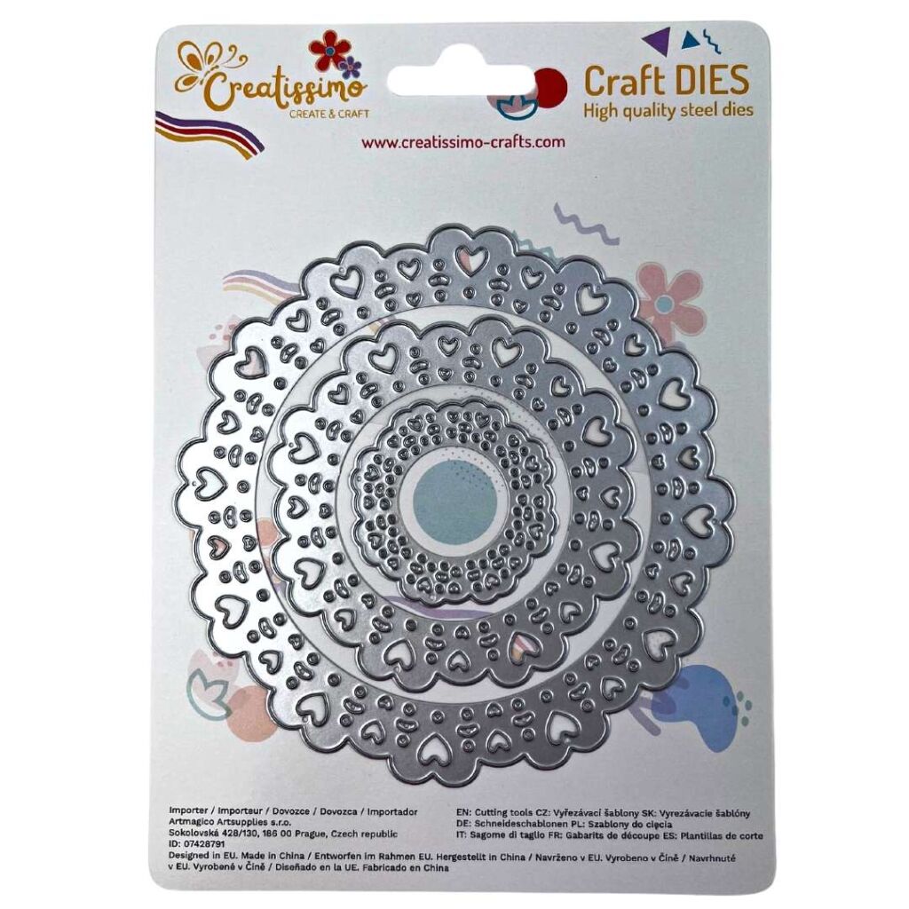 Vyřezávací Šablony Creatissimo: Perfektní pro embosování a detailní vyřezávání. Oživte své scrapbooking projekty, pozvánky a dekorace s profesionálním vzhledem díky vyřezávacím šablonám. Šablona v designu Kulaté bordury