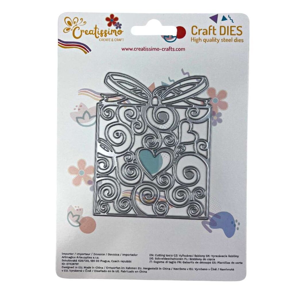 Vyřezávací Šablony Creatissimo: Perfektní pro embosování a detailní vyřezávání. Oživte své scrapbooking projekty, pozvánky a dekorace s profesionálním vzhledem díky vyřezávacím šablonám. Šablona v designu Dáreček