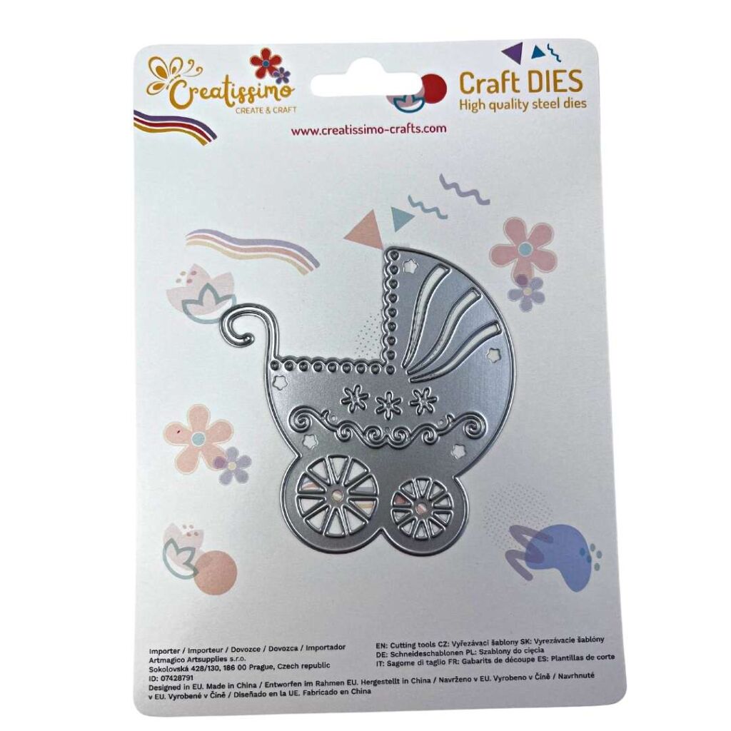 Vyřezávací Šablony Creatissimo: Perfektní pro embosování a detailní vyřezávání. Oživte své scrapbooking projekty, pozvánky a dekorace s profesionálním vzhledem díky vyřezávacím šablonám. Šablona v designu Dětského kočárku