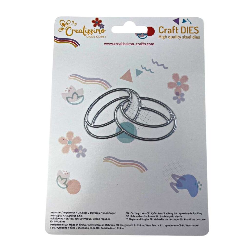Vyřezávací Šablony Creatissimo: Perfektní pro embosování a detailní vyřezávání. Oživte své scrapbooking projekty, pozvánky a dekorace s profesionálním vzhledem díky vyřezávacím šablonám. Šablona v designu Svatebních prstenů