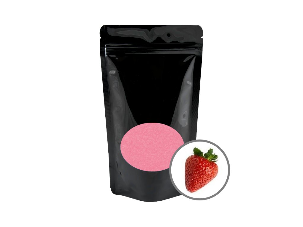 Speciální, barevný (s přírodním barvivem) cukr s aroma pro výrobu sladkého popcornu a cukrové vaty, příchuť jahoda, balení 200g