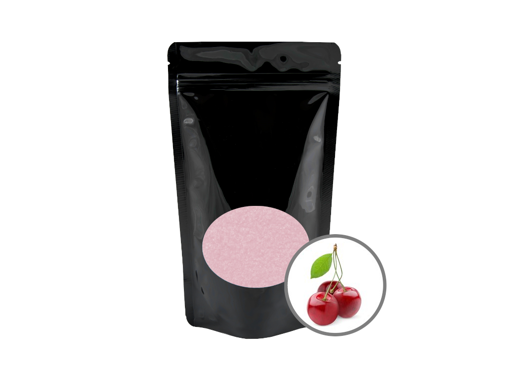 Speciální, barevný cukr s aroma pro výrobu sladkého popcornu a cukrové vaty, příchuť třešeň, balení 200g