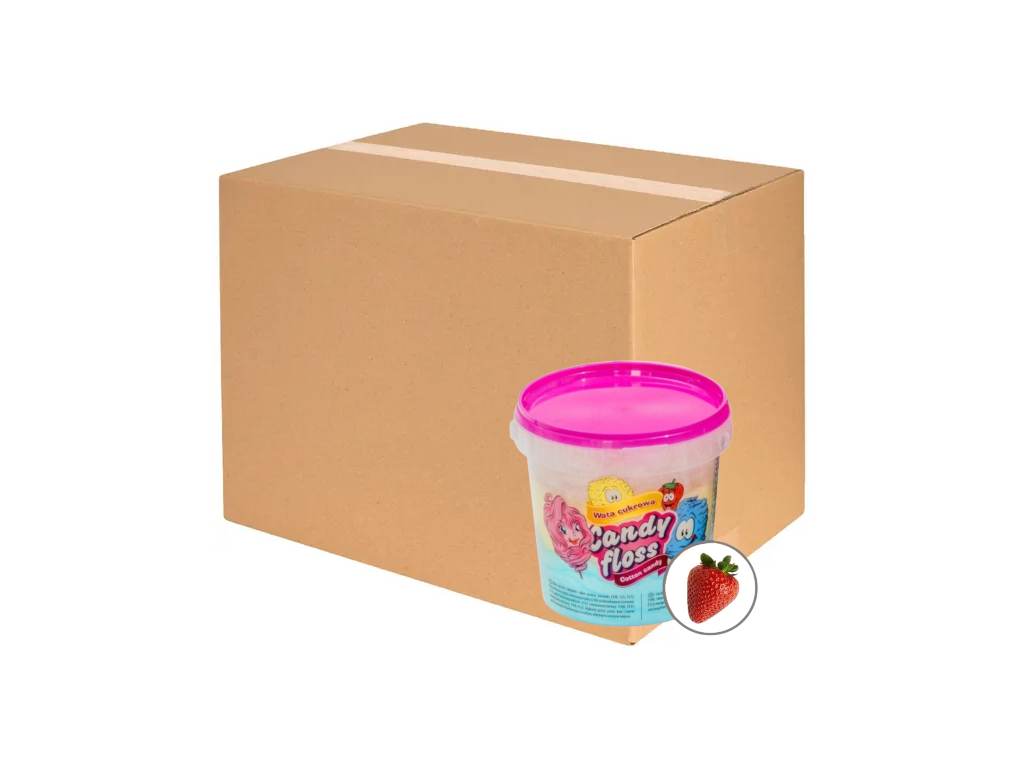 Barevná cukrová vata s jahodovou příchutí, balení 1000ml v plastovém kbelíku, balení 12ks