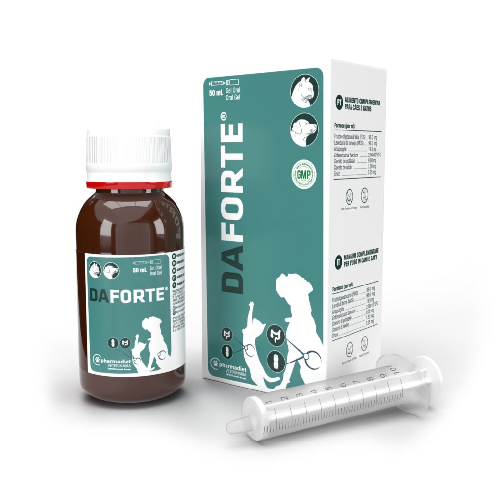 Přípravek Daforte® pejskovi pomáhá kombinací správných živin k bezproblémovému pohybu střev a trávení. Látky složení umějí nasytit mikroorganismy, představují nejlepší přírodní zdroj vitamínů skupiny B včetně B12 a fungují jako zdroj nepostradatelných esenciálních aminokyselin. Nechybí aktivní živiny na ochranu stěn trávicího systému se schopností vázání bakteriální toxiny, ani rod bakterií, který umí původcům onemocnění pobyt ve střevech znepříjemnit natolik, že se pejskům vyhnout obloukem. Nemohou chybět minerální látky s úkolem postarat se zvířeti o neprůstřelnou imunitu.