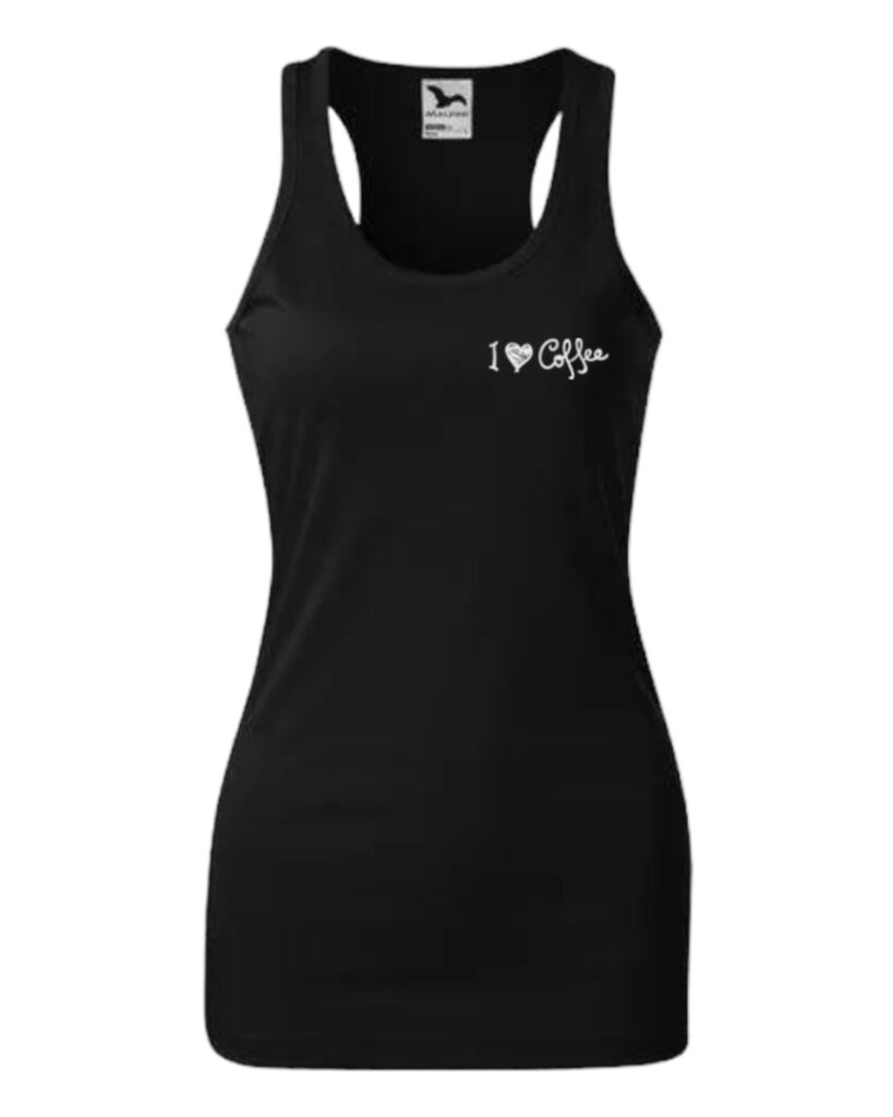 Černé, projmuté tílko z lehoučkého materiálu je skvělé na léto i na sport. dejte všem vědět, že milujete kávu