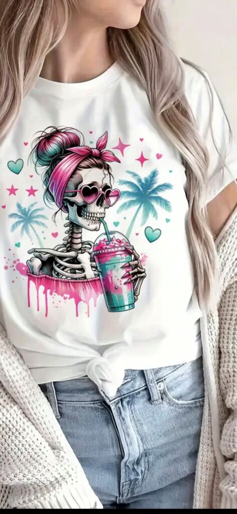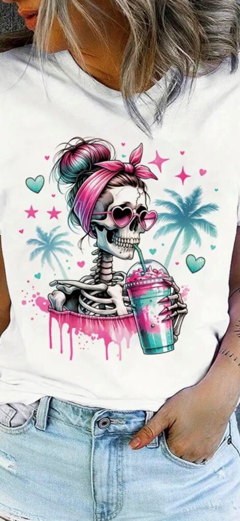 Na tričkách Los Muertos se objevují vysoce detailní kresby a obrázky lebek, nazývaných „calacas“ nebo „calaveras“.