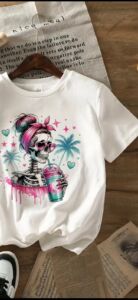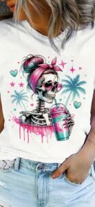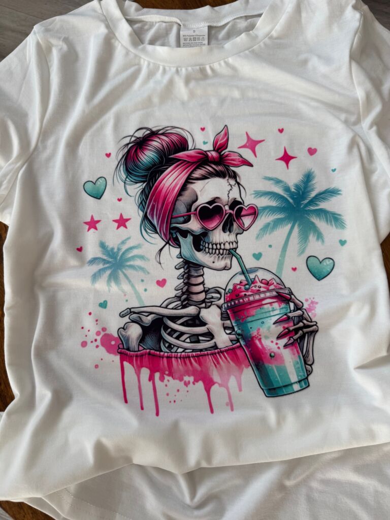 Bílé tričko s barevným potiskem sugar skull lebky. Super příjemný materiál