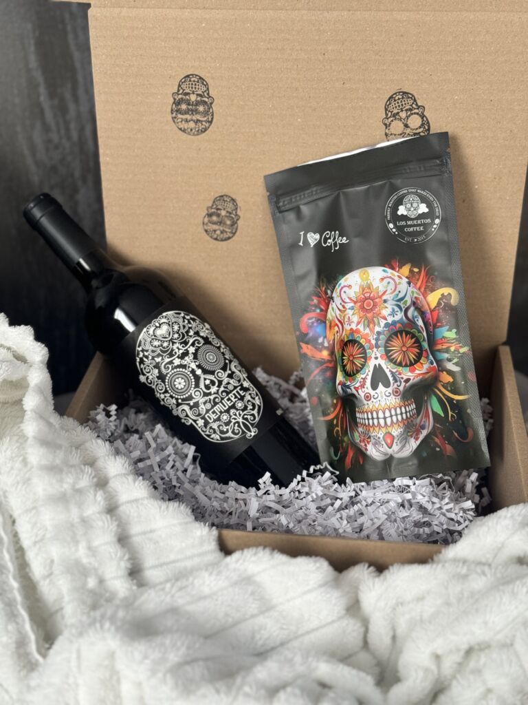 Chcete darovat něco opravdu výjimečného? Tento set spojuje výběrovou kávu Los Muertos Brasilia a špičkové španělské víno Demuerte One, jehož etiketa ve tmě svítí! Ideální dárek pro všechny, kteří milují intenzivní chutě a jedinečný styl. Vše je zabaleno v elegantní craftové krabici s lebkami, která podtrhne exkluzivitu celého setu. 🎁🔥