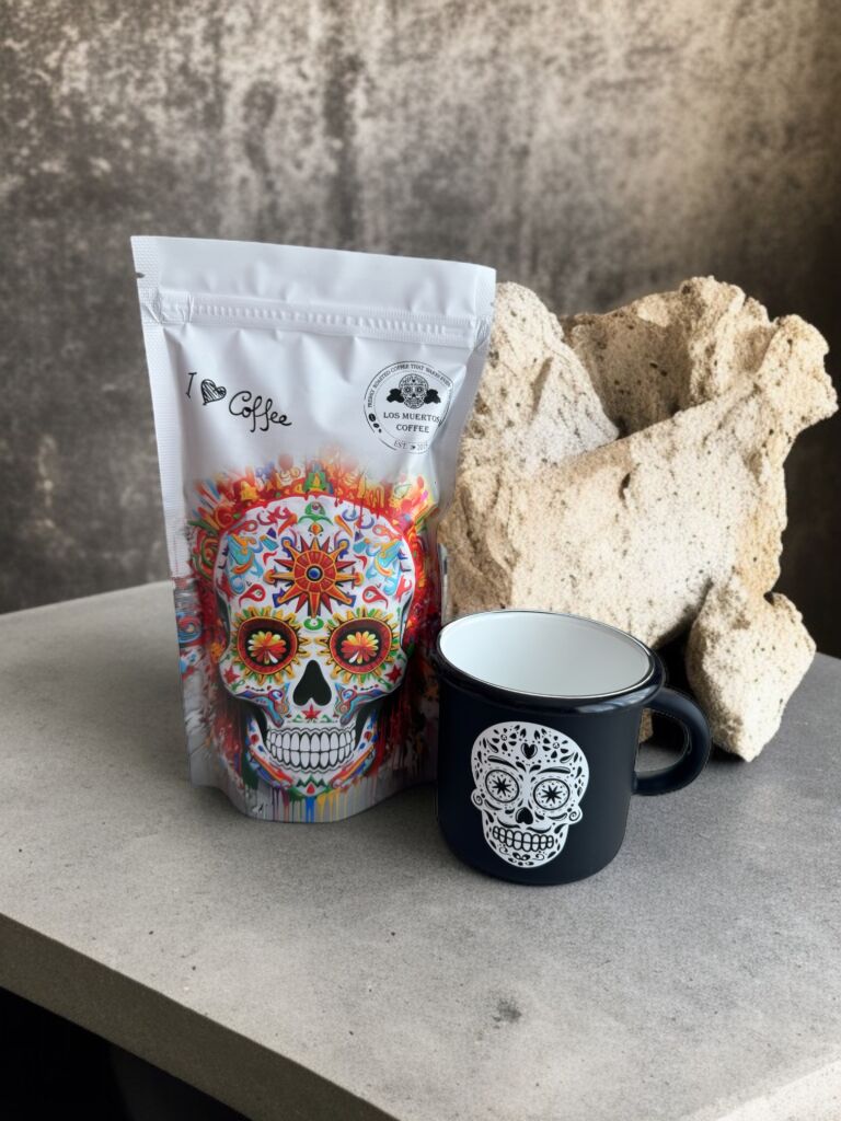 💀 Dárkový set Los Muertos Black Edition je skvělou volbou pro ty, kteří si chtějí dopřát výjimečnou kávu v temném a stylovém provedení.
