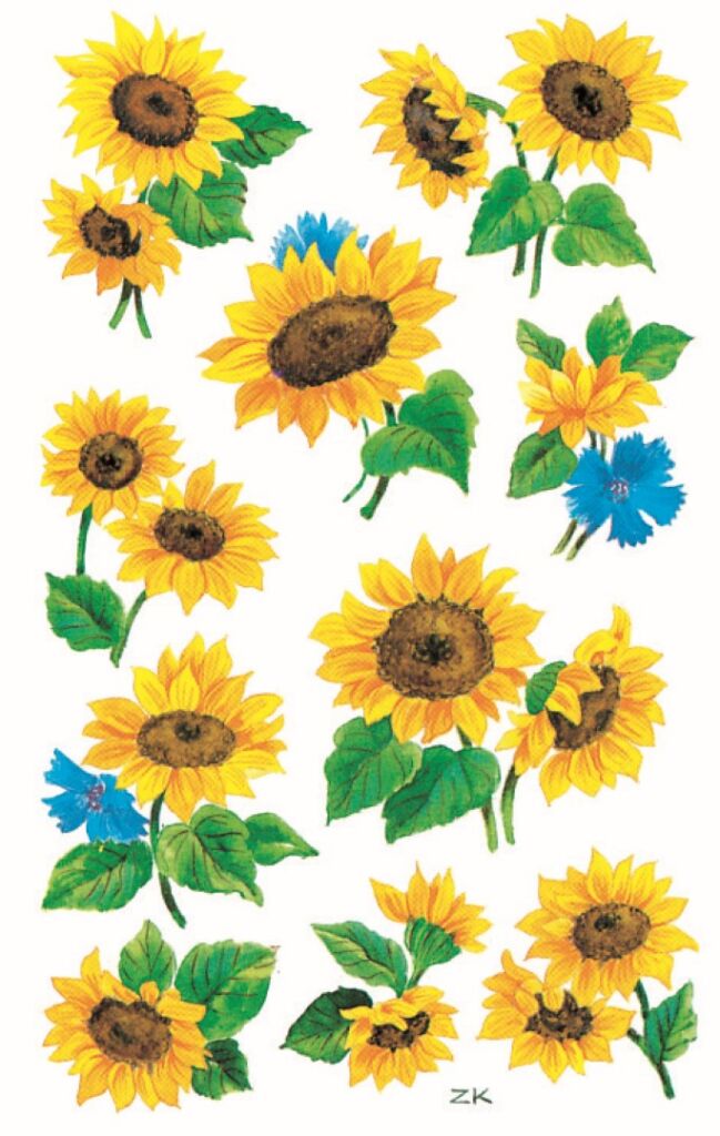 30 ks samolepek v balení, papírové, permanentní lepidlo, motiv slunečnice. Samolepky pro děti i dospělé - pro zábavu i ruční tvořivost.