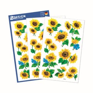 30 ks samolepek v balení, papírové, permanentní lepidlo, motiv slunečnice. Balení obsahuje 3 stejné aršíky vyobrazených samolepek.