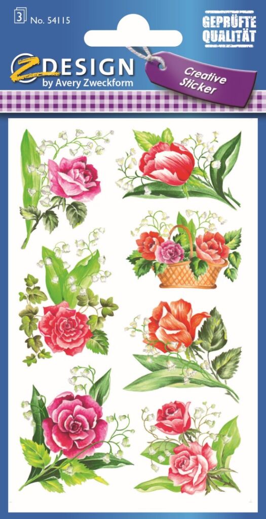 Samolepky pro děti i dospělé – zdobte, tvořte, dekorujte, buďte kreativní! S pomocí pestrobarevných samolepek Z-design od Avery Zweckform jistě vykouzlíte úsměv na tvářích Vašich přátel a známých. Ozdobte jimi dopisy, pohledy, pozvánky, dárky… fantazii se meze nekladou:-). A u nás určitě naleznete ten správný obrázek, který potěší. Jako léty osvědčený expert na samolepící etikety nabízíme široký výběr dekorativních nálepek nejrůznějších motivů a provedení. Dekorativní samolepky Avery Zweckform 54115 nabízí prověřenou a prvotřídní kvalitu, vyzkoušejte je!