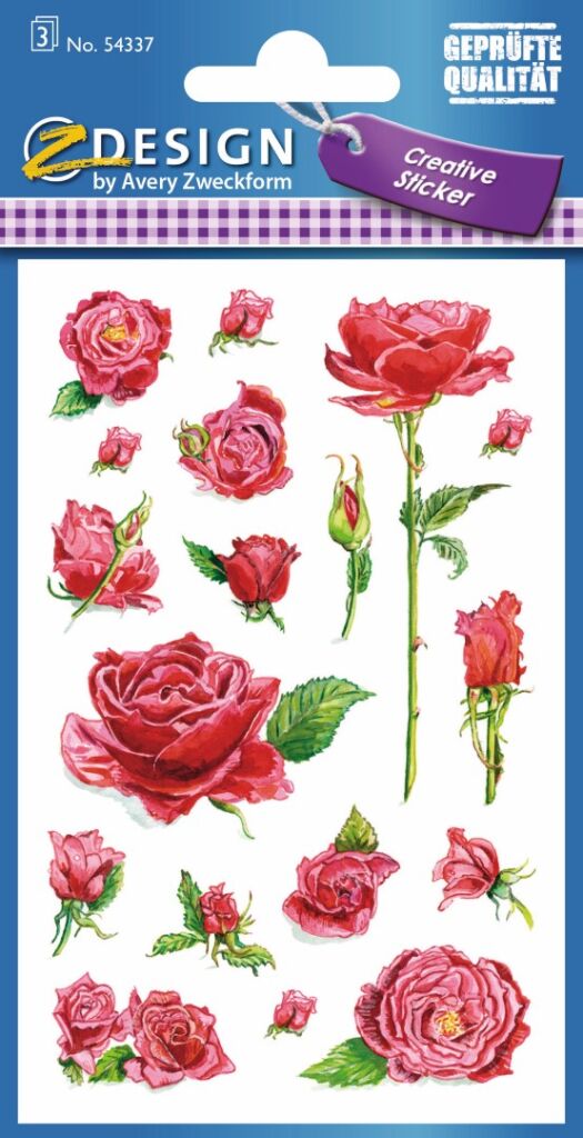 54 ks samolepek v balení, papírové, permanentní lepidlo, motiv růže. Samolepky pro děti i dospělé - pro zábavu i ruční tvořivost.