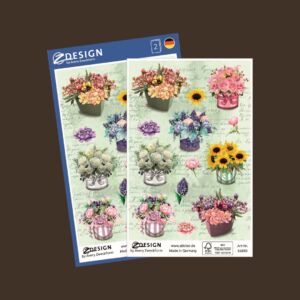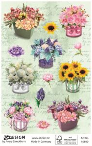 26 ks samolepek v balení, papírové, permanentní lepidlo, motiv kytice. Balení obsahuje 2 stejné aršíky vyobrazených samolepek.