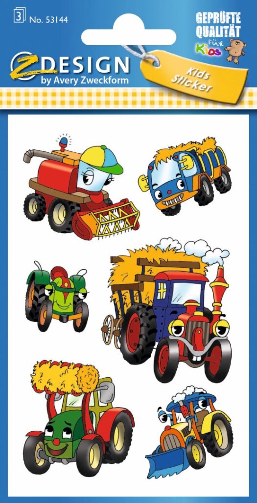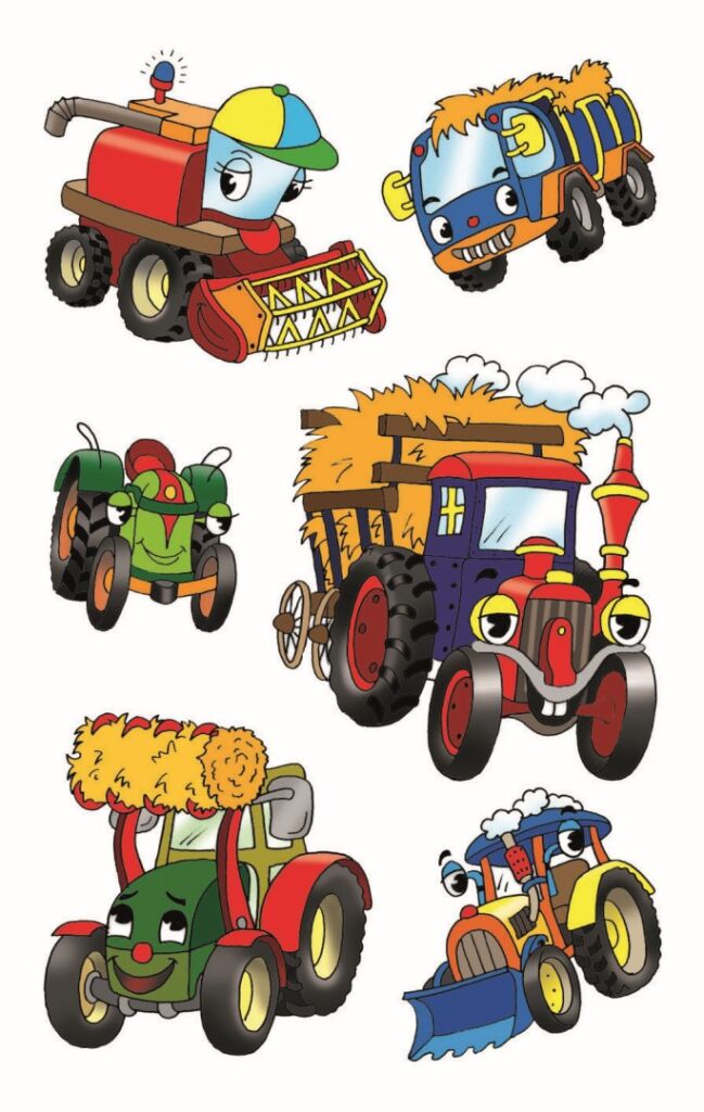 18 ks samolepek v balení, papírové, permanentní lepidlo, motiv zemědělské stroje. Samolepky pro děti - na hraní, výuku i ruční tvořivost.