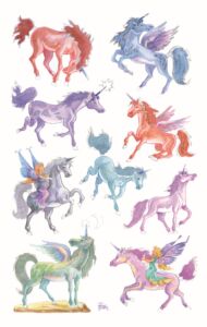 18 ks samolepek v balení, papírové, stříbrná reliéfní ražba, permanentní lepidlo, motiv jednorožci. Samolepky pro děti - na hraní, výuku i ruční tvořivost.