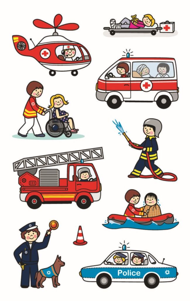 30 ks samolepek v balení, papírové, permanentní lepidlo, motiv záchranáři. Samolepky pro děti - na hraní, výuku i ruční tvořivost.