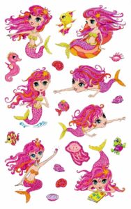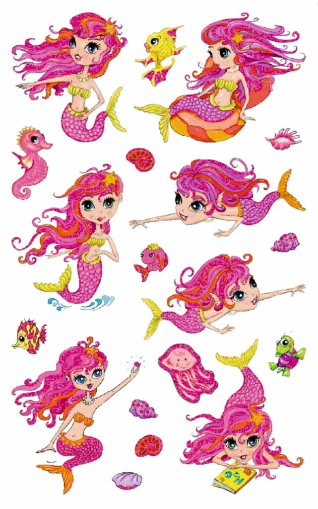 20 ks samolepek v balení, třpytivá fólie, permanentní lepidlo, motiv mořské panny. Samolepky pro děti - na hraní, výuku i ruční tvořivost.