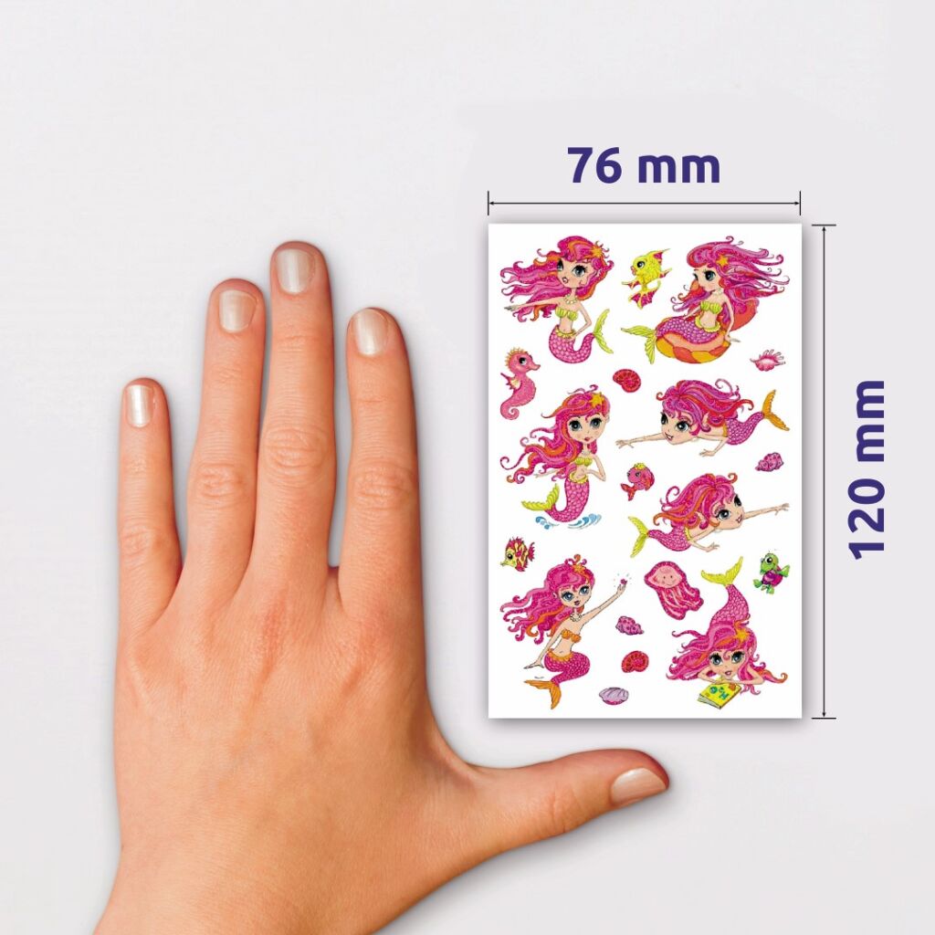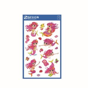 20 ks samolepek v balení, třpytivá fólie, permanentní lepidlo, motiv mořské panny. Balení obsahuje 1 aršík vyobrazených samolepek.