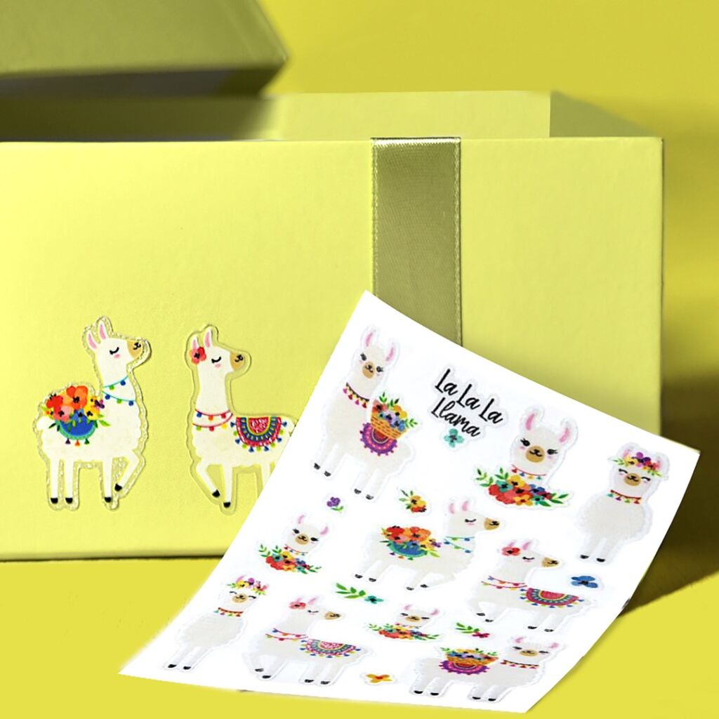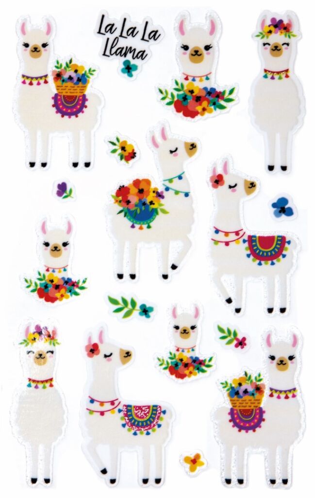 16 ks samolepek v balení, třpytivá fólie, permanentní lepidlo, motiv lamy. Balení obsahuje 1 aršík vyobrazených samolepek.