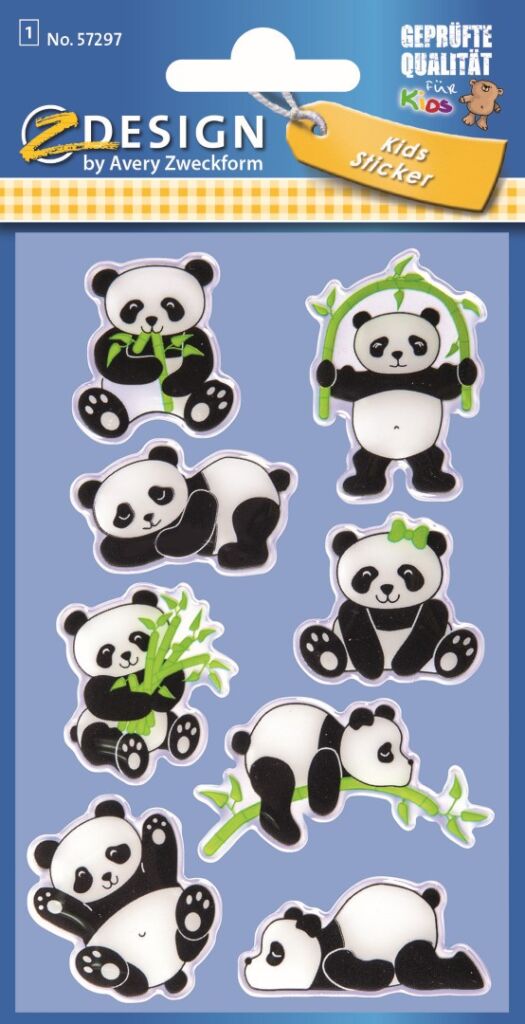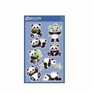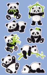 8 ks samolepek v balení, umělá pryskyřice, 3D efekt, permanentní lepidlo, motiv pandy. Balení obsahuje 1 aršík vyobrazených samolepek.