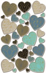 32 ks samolepek v balení, měkčené PVC, 3D efekt, permanentní lepidlo, motiv srdíčka. Balení obsahuje 1 aršík vyobrazených samolepek.