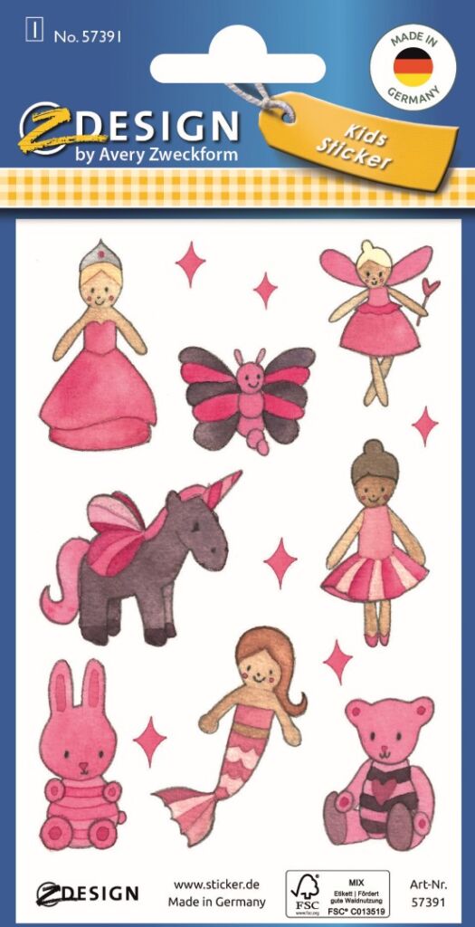 Samolepky zaměřené na děti, vhodné na hraní, výuku, dekorace, ruční tvořivost apod. S pomocí našich pestrobarevných nálepek Z-design od Avery Zweckform jistě vykouzlíte úsměv na tvářích Vašich dětí. Ozdobte spolu s nimi pozvánky, dárky, deníčky, alba, sešity a spoustu dalších předmětů… fantazii se meze nekladou:-). Jako léty osvědčený expert na samolepící etikety nabízíme široký výběr dětských samolepek různých motivů, barev a provedení. V naší nabídce si vybere každý. Pro malé i velké, pro holky i kluky. Dětské samolepky Avery Zweckform 57391 nabízí prvotřídní a prověřenou kvalitu. Vyzkoušejte je a udělejte radost Vašim dětem!