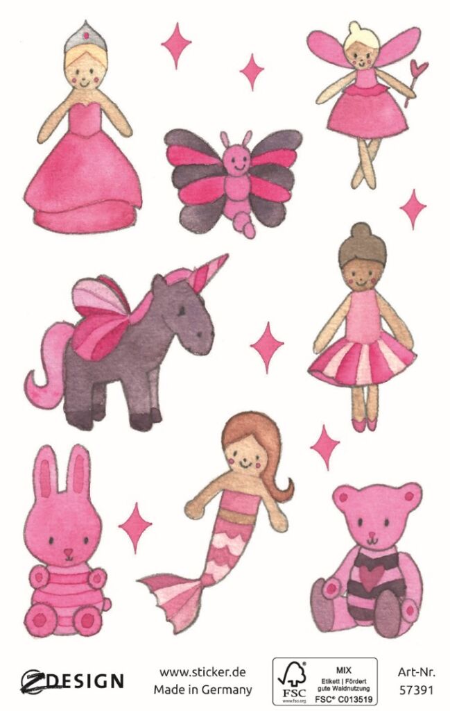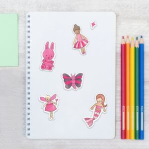 8 ks samolepek v balení, papírové, permanentní lepidlo, motiv dívčí sen. Samolepky pro děti - na hraní, výuku i ruční tvořivost.