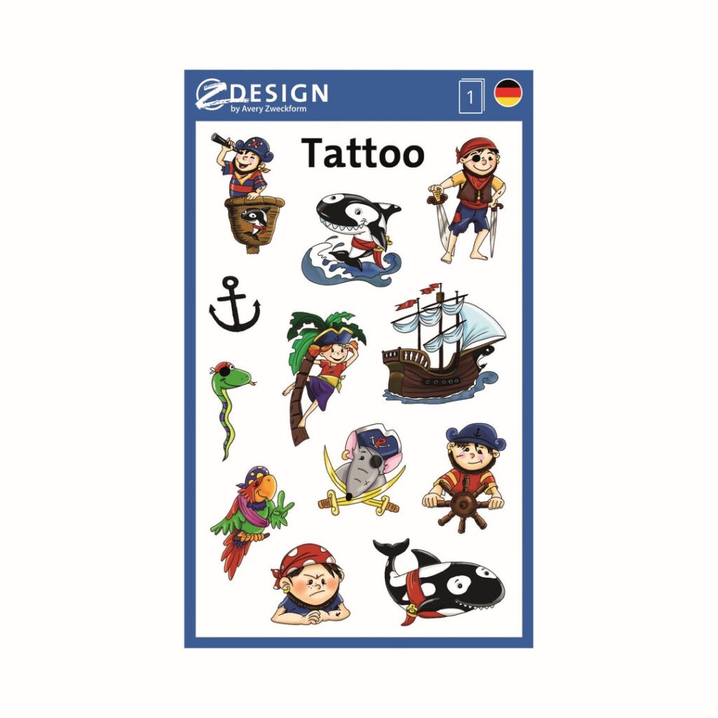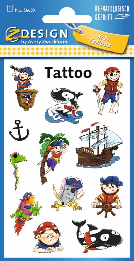 Tetování pro malé i velké, pro holky i kluky, roztomilé, veselé ale i drsné a cool. V naší nabídce nejrůznějších motivů a symbolů si vybere každý. Tetování lze jednoduše aplikovat pomocí vody a lehce odstranit olejem. Tetovací fólie Avery Zweckform 56683 jsou samozřejmě dermatologicky testovány. Dětské tetování Z-design od Avery Zweckform nabízí prvotřídní a prověřenou kvalitu. Vyzkoušejte je a udělejte radost sobě nebo Vašim dětem!