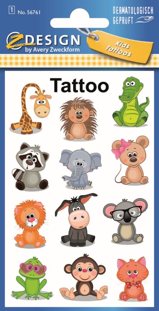 Tetování pro malé i velké, pro holky i kluky, roztomilé, veselé ale i drsné a cool. V naší nabídce nejrůznějších motivů a symbolů si vybere každý. Tetování lze jednoduše aplikovat pomocí vody a lehce odstranit olejem. Tetovací fólie Avery Zweckform 56761 jsou samozřejmě dermatologicky testovány. Dětské tetování Z-design od Avery Zweckform nabízí prvotřídní a prověřenou kvalitu. Vyzkoušejte je a udělejte radost sobě nebo Vašim dětem!