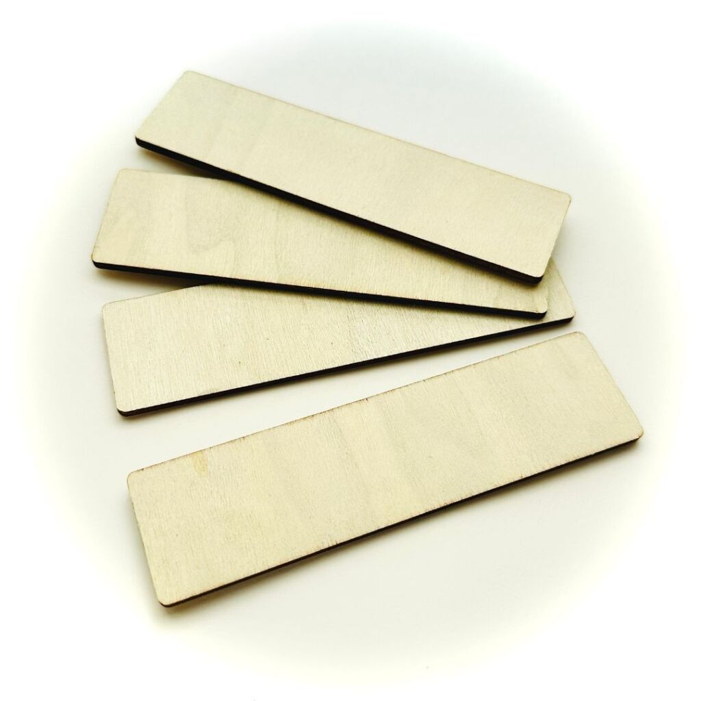Dřevěný výřez z překližky ve tvaru obdélníku dlouhý 12 x 3 cm vhodný pro dekoraci a tvoření.