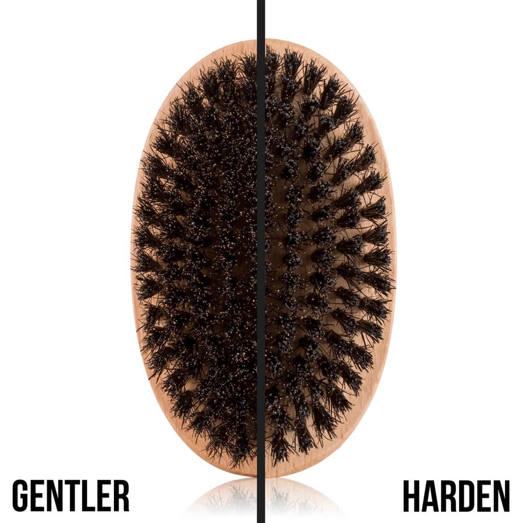 Kartáč je osázen ideálním množstvím kombinace kančích a syntetických štětin, kvůli dosažení větší tuhosti, kterou delší vousy vyžadují. Současně jsme mezi trsy štětin nechali mezery, aby se mezi delší vousy dostaly a opravdu je vykartáčovali. S Gentlerem delší vousy totiž jen tak pošudláte.