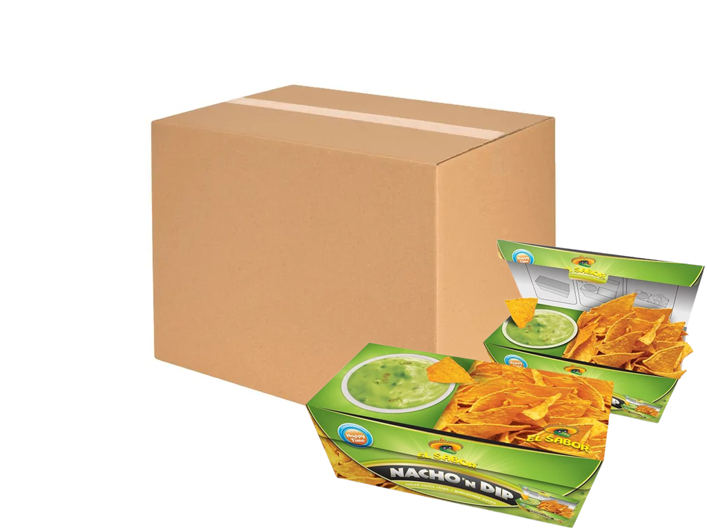 Praktické balení slaných tortilla chips (85g) a guacamole omáčky (90g), balení 12ks