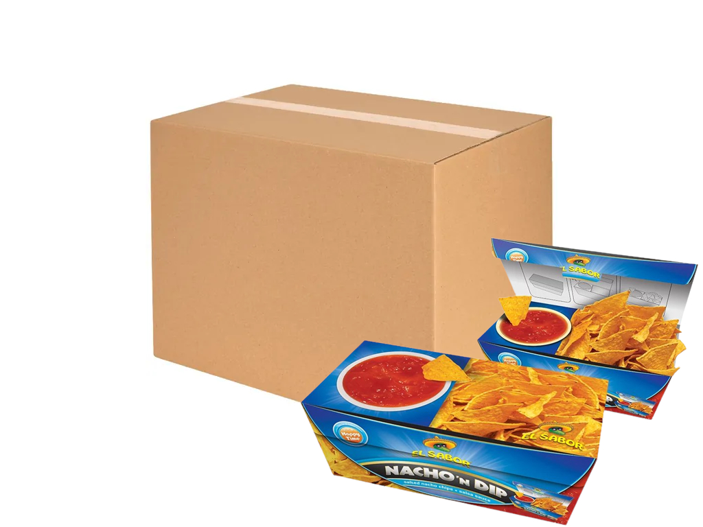 Praktické balení slaných tortilla chips (85g) a mírně pikantní salsa omáčky s papričkami (90g), balení 12ks