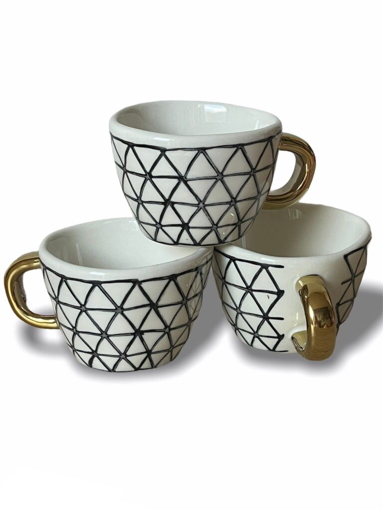 Luxusní geometrický espresso hrneček se zlatým ouškem o objemu 100ml.
