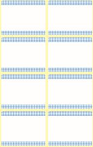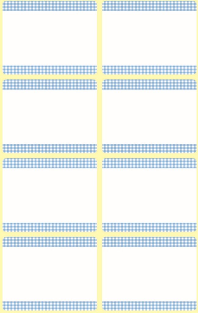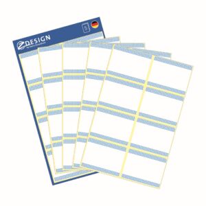 Rozměr 36×28 mm, 40 ks etiket v balení, papírové, permanentní lepidlo, barva bílá. Balení obsahuje 5 stejných aršíků vyobrazených samolepek.