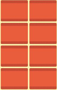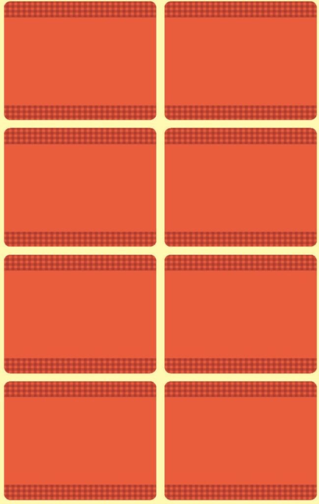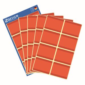 Rozměr 36×28 mm, 40 ks etiket v balení, papírové, permanentní lepidlo, barva červená. Balení obsahuje 5 stejných aršíků vyobrazených samolepek.