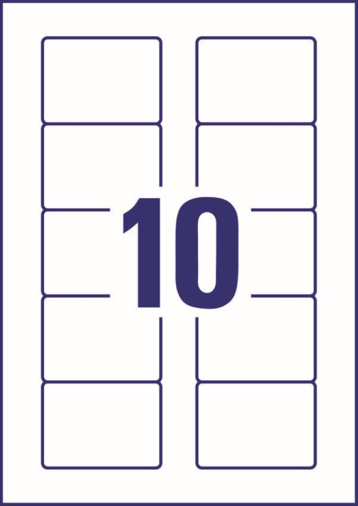 rozměr 70×50,8 mm, 25 archů A4, 250 ks etiket v balení (10 ks/arch), papírové, snímatelné lepidlo, barva bílá. Typ tiskárny: černobílá laserová, barevná laserová, inkoustová.