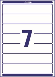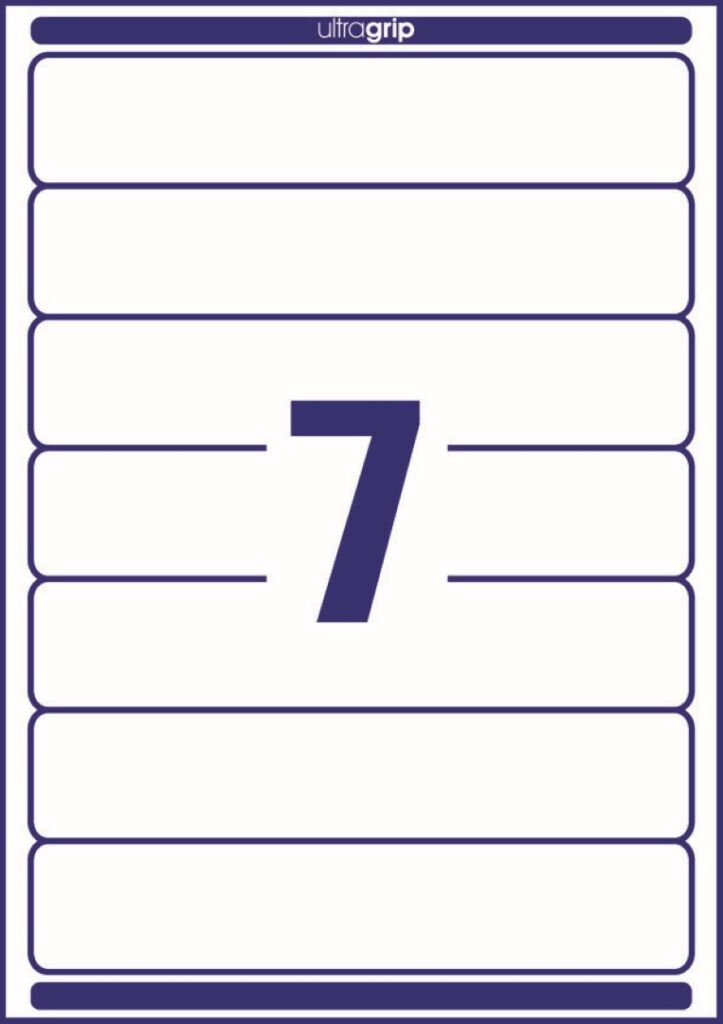 rozměr 38×192 mm, 100 archů A4, 700 ks etiket v balení (7 ks/arch), papírové, permanentní lepidlo, barva bílá. Typ tiskárny: černobílá laserová, barevná laserová, inkoustová.