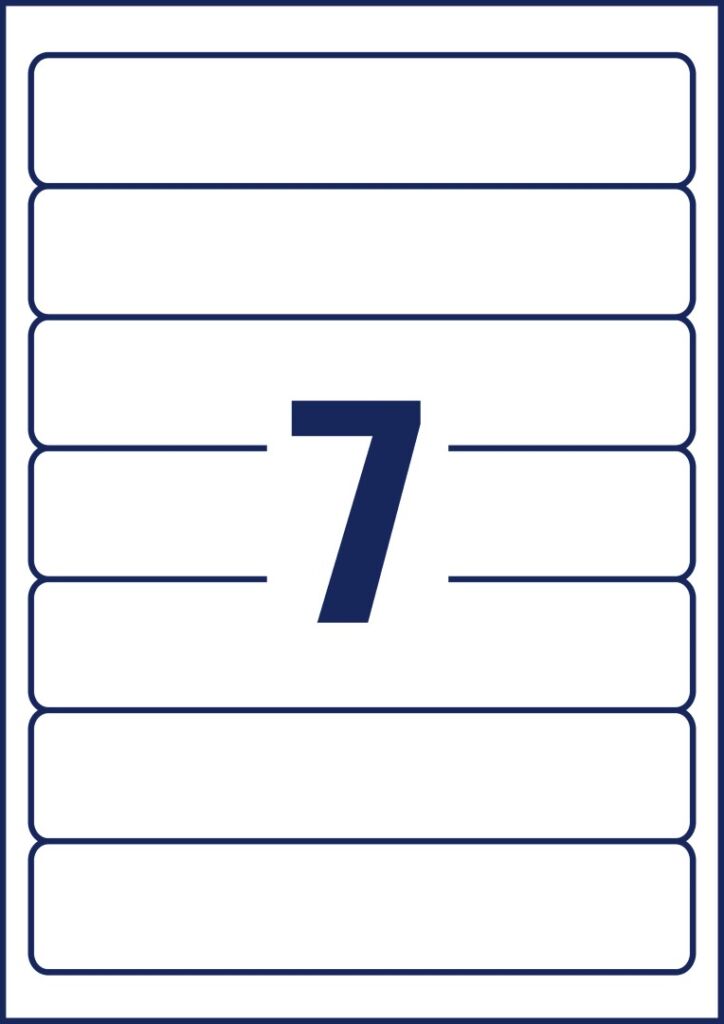 10 archů A4, rozměr 38x192 mm, 70 ks etiket v balení, papírové, permanentní lepidlo, barva přírodní bílá. Typ tiskárny: černobílá laserová, barevná laserová, inkoustová.