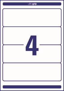 rozměr 61×192 mm, 30 archů A4, 120 ks etiket v balení (4 ks/arch), papírové, snímatelné lepidlo, barva bílá. Typ tiskárny: černobílá laserová, barevná laserová, inkoustová.