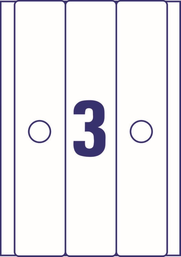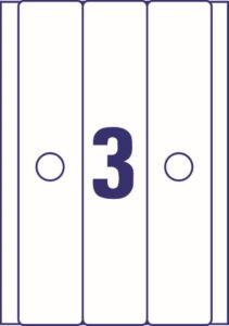 rozměr 63×297 mm, 25 archů A4, 75 ks etiket v balení, papírové (3 ks/arch), permanentní lepidlo, barva bílá. Typ tiskárny: černobílá laserová, barevná laserová, inkoustová.