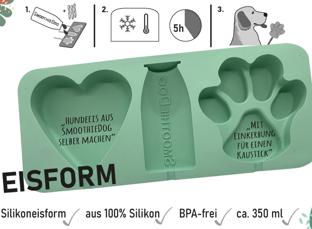 Forma ve tvaru tlapky a forma ve tvaru srdce nemůže chybět v kitu žádného stylového pejskaře! Umí odolat extrémním teplotám, proto díky ní vytvoříte společně s nápojem SmoothieDog extrémně dobrou a zdravou psí zmrzlinu. Neztrácejte formu a dopřejte vašemu miláčkovi to nejlepší letní zchlazení a nejlahodnější svačinku v kterémkoliv ročním období!