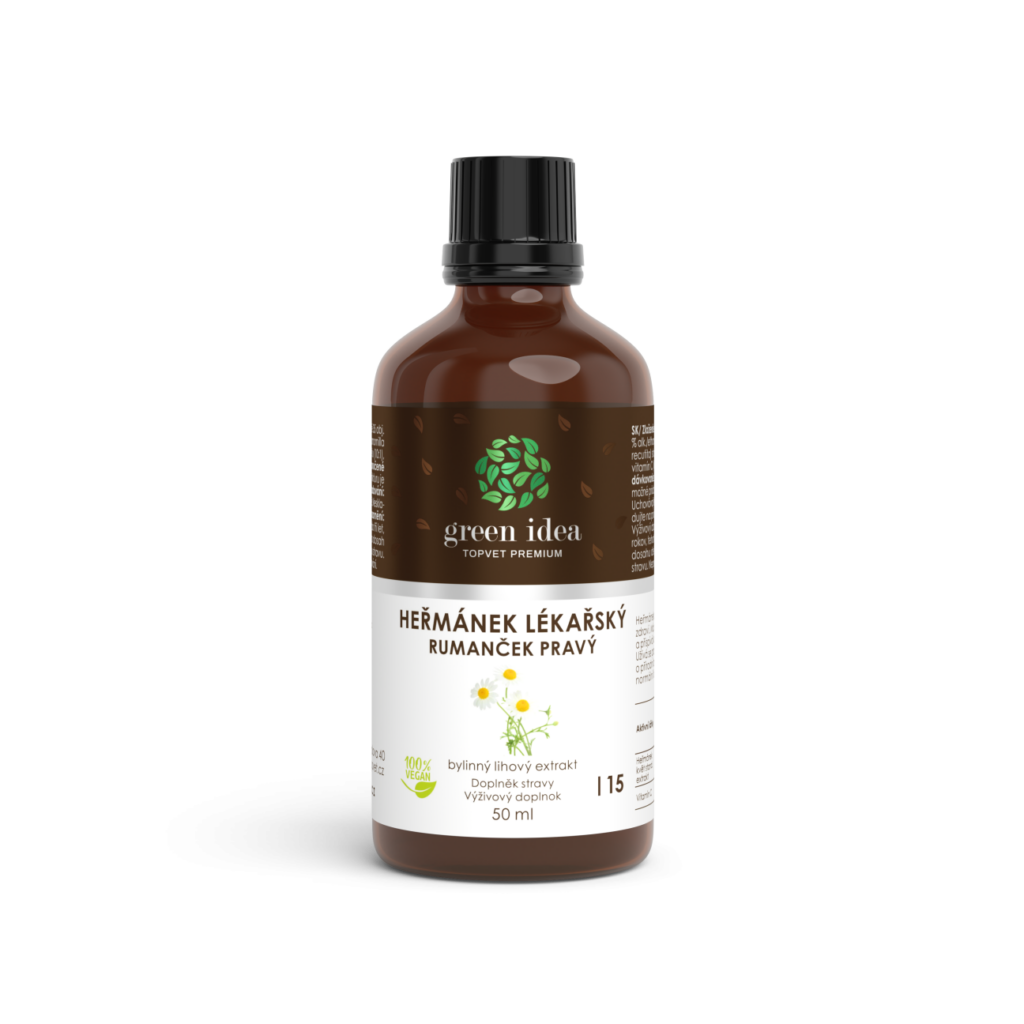 Složení: voda, jemný líh (minimálně 35 obj. % alk./ethanolu), Glycerin, Heřmánek pravý (Chamomilla recutita) extrakt z květu (10:1), vitamín C (kyselina L-askorbová).